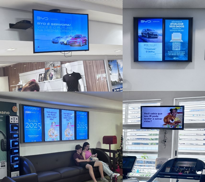 Circuitos digitais, totens e outras mídias. Público de alta renda. Locais selecionados